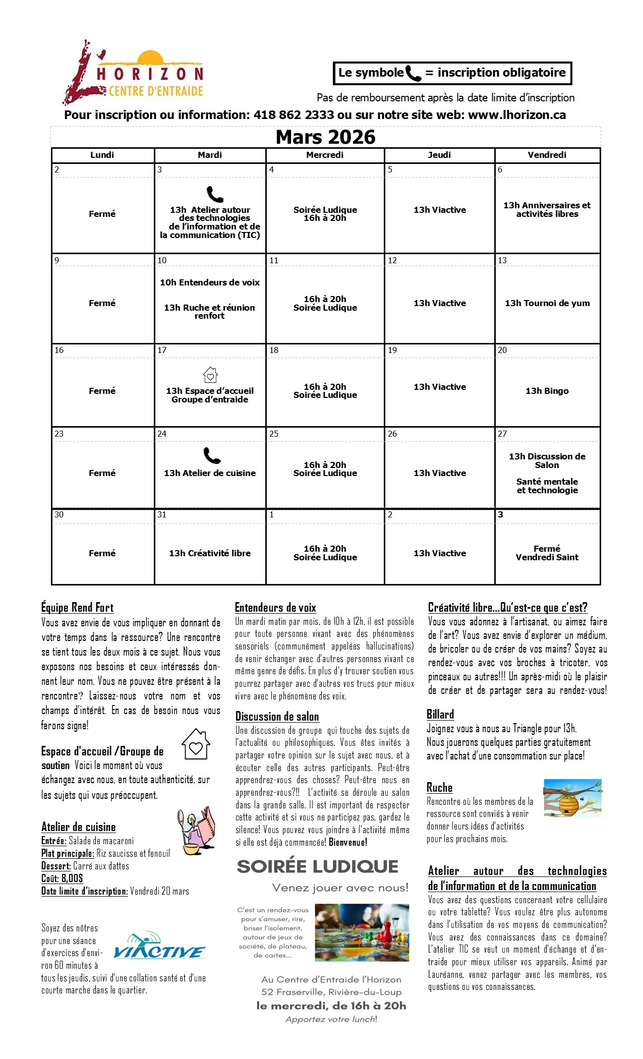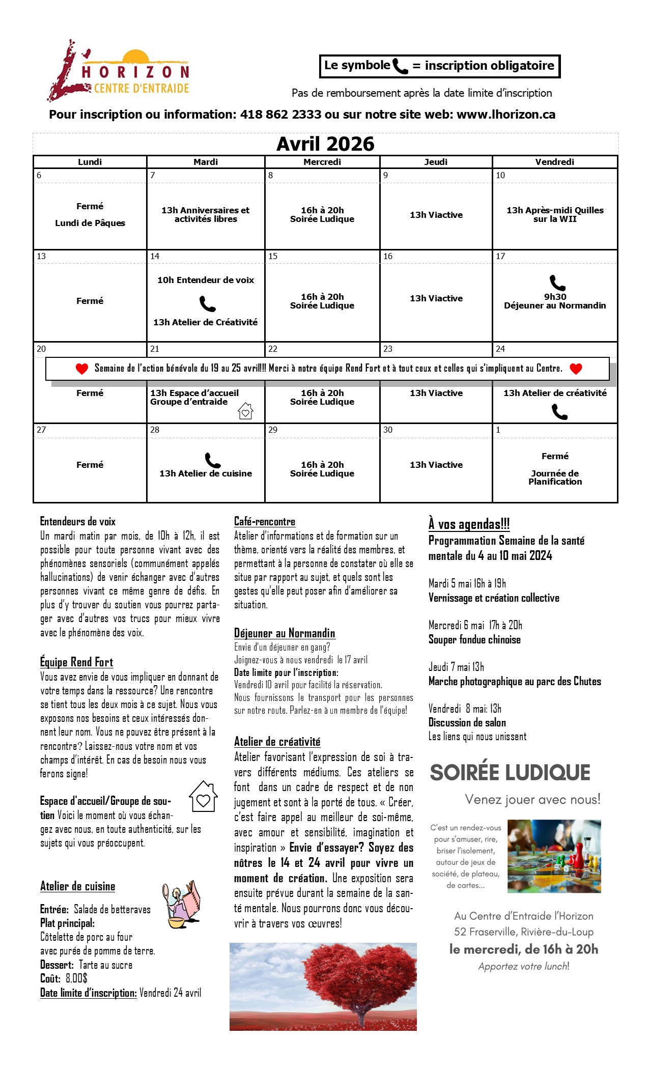 C’est votre première fois au Centre d’Entraide l’Horizon?